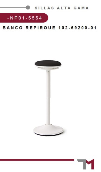 La base permanece completamente en el suelo, creando una experiencia de asiento estable, incluso cuando el usuario se mueve. • Repiroue se inclina con el cuerpo 10 ° en cualquier dirección para soportar aproximadamente el 60% del peso del usuario. • Se puede acceder fácilmente a la palanca de ajuste de altura debajo del asiento desde cualquier ángulo para ajustar la altura entre 565 mm (22 1/4 ") y 815 mm (32 1/8"). • Opciones de estilo.